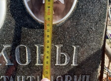 Первым делом мы сняли точные размеры надписей и отступов, благодаря которым в дальнейшем будет создан трафарет, идентичный уже нанесённым на надгробье текстам.