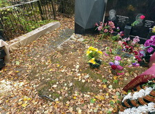 Когда мы вновь вернулись на могилу, место захоронения основательно засыпало листвой. К этому времени было изготовлено всё необходимо для того, чтобы преобразить мемориальный комплекс.